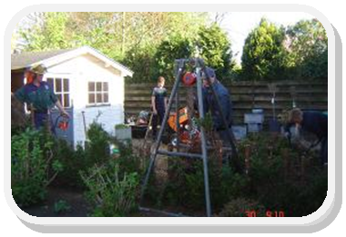 Het rooien van uw coniferen heg met eigen ontworpen rooier. |